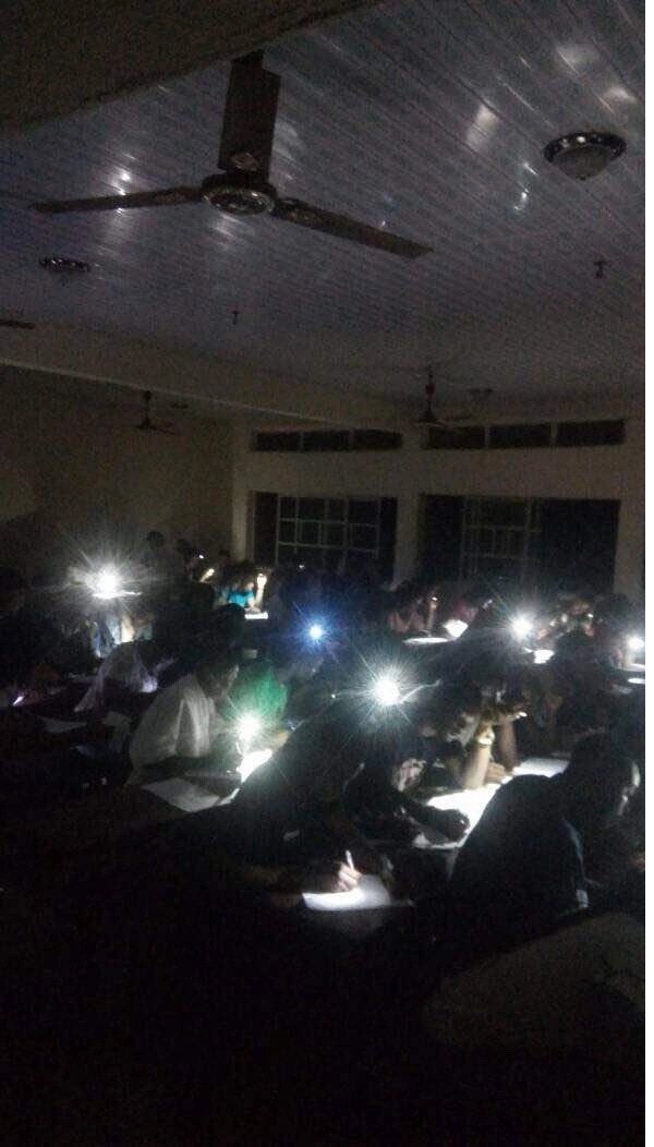 The students in between murmuring and discomfort oblige to the idea as they struggled with their pens and paper writing their test at night in a poorly lit room.